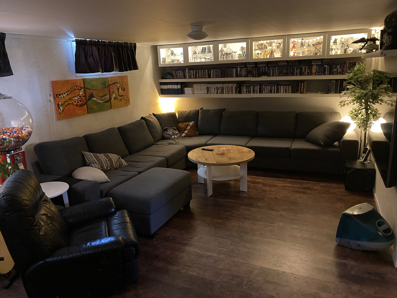 Vi har en vägg i gillestugan som innan hade två hyllor med film på. Det var två lack-hyllor som såg sjukt tråkiga ut. Plus att jag saknade en avlastningshylla bakom soffan som jag byggde i vardagsrummet.