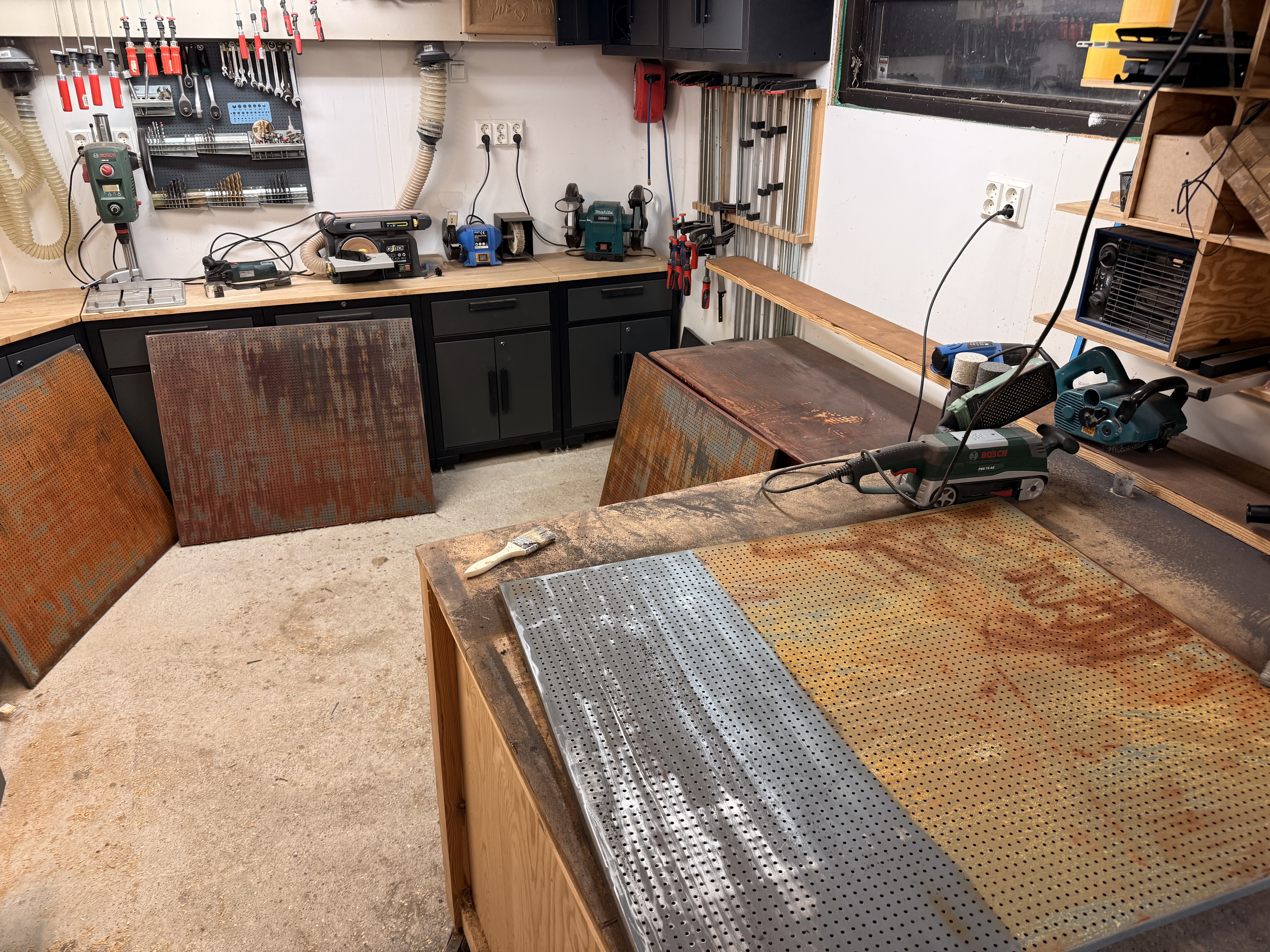 Så verktygstavlor inhandlades och jag började slipa. Herregud vad den färgen satt hårt! Det tog veckor att få dem tillräckligt rena från färg men till slut så.